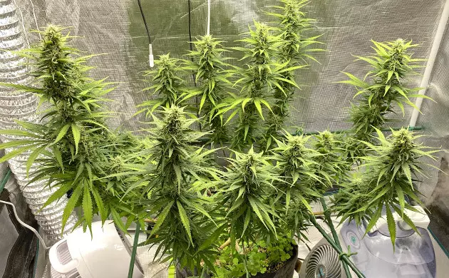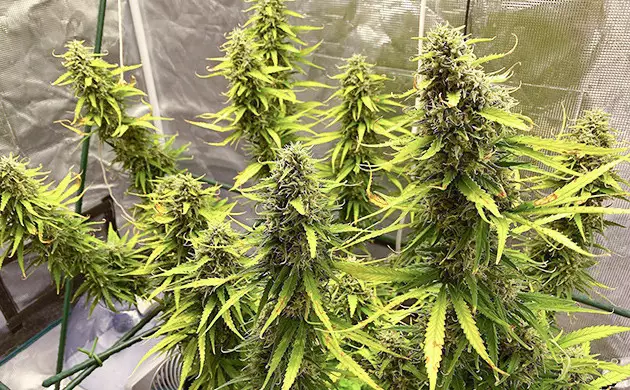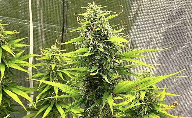 Trotzdem blieb das Wachstum ungebremst, die Blüten türmten auf sich und wurden dicker. Auch die Größe war beträchtlich: Jede der Colas wuchs auf etwa 50 cm. Selbst ein Unfall, bei dem ich den Hauptstängel beim zu aggressiven Festbinden gespalten hatte, konnte den Wuchs nicht aufhalten. Es handelt sich um eine sehr widerstandsfähige und resistente Sorte.