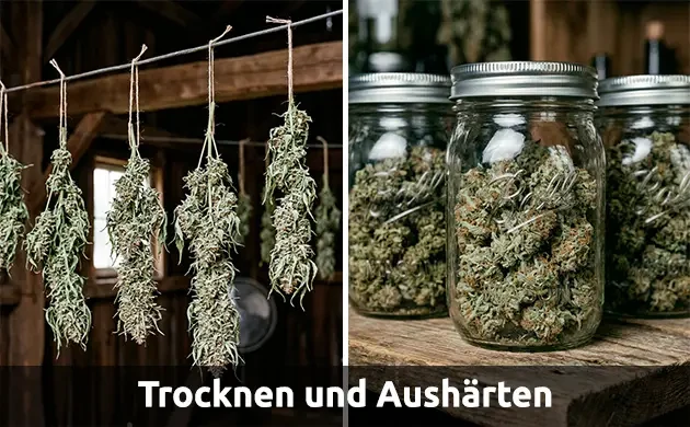 - Trocknen und Aushärten: Glaube nicht, dass du nach der Ernte aus dem Schneider bist. Um dieses erstklassige Indica-Weed zu bekommen, musst du die Blüten richtig trocknen. Wir haben einen ganzen Artikel darüber geschrieben, wie du dein Marihuana ernten, trocknen und aushärten kannst. Der Anbau von Indicas mag die meiste Zeit ein Kinderspiel sein, aber wenn es ans Trocknen geht, musst du aufpassen! Diese dichten Blüten sind ein Magnet für Schimmel und brauchen eine Extraportion Pflege.