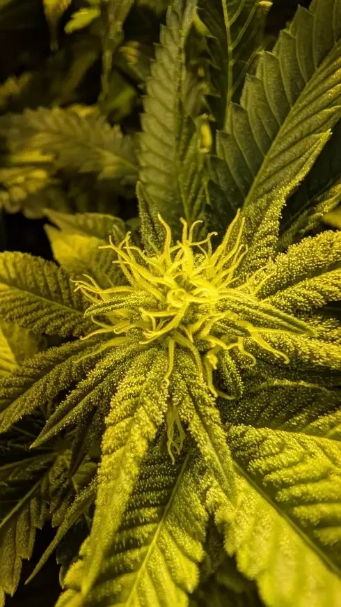 Eine absolute Harzmaschine – ich habe schon unzählige Sorten angebaut, und diese war eine der frostigsten, die ich je angebaut habe. Manche Pflanzen wurden tiefviolett, andere blieben grün, hatten aber eine wahnsinnige Trichombedeckung.