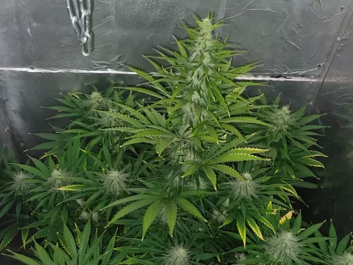 Man würde erwarten, dass eine potente Sorte wie diese eine längere Blütezeit benötigt. Überraschenderweise reift sie innerhalb von 60 Tagen oder weniger heran und ist im Freien Mitte September fertig. Die Veränderung der Temperatur beeinflusst die Farbe der Blätter.