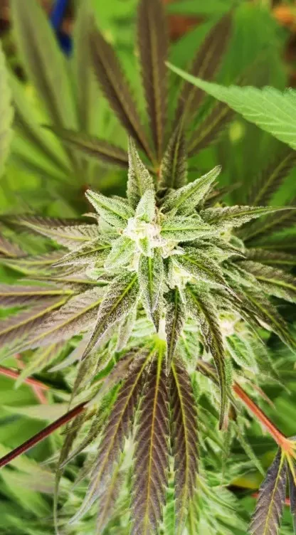 Man würde erwarten, dass eine potente Sorte wie diese eine längere Blütezeit benötigt. Überraschenderweise reift sie innerhalb von 60 Tagen oder weniger heran und ist im Freien Mitte September fertig. Die Veränderung der Temperatur beeinflusst die Farbe der Blätter.