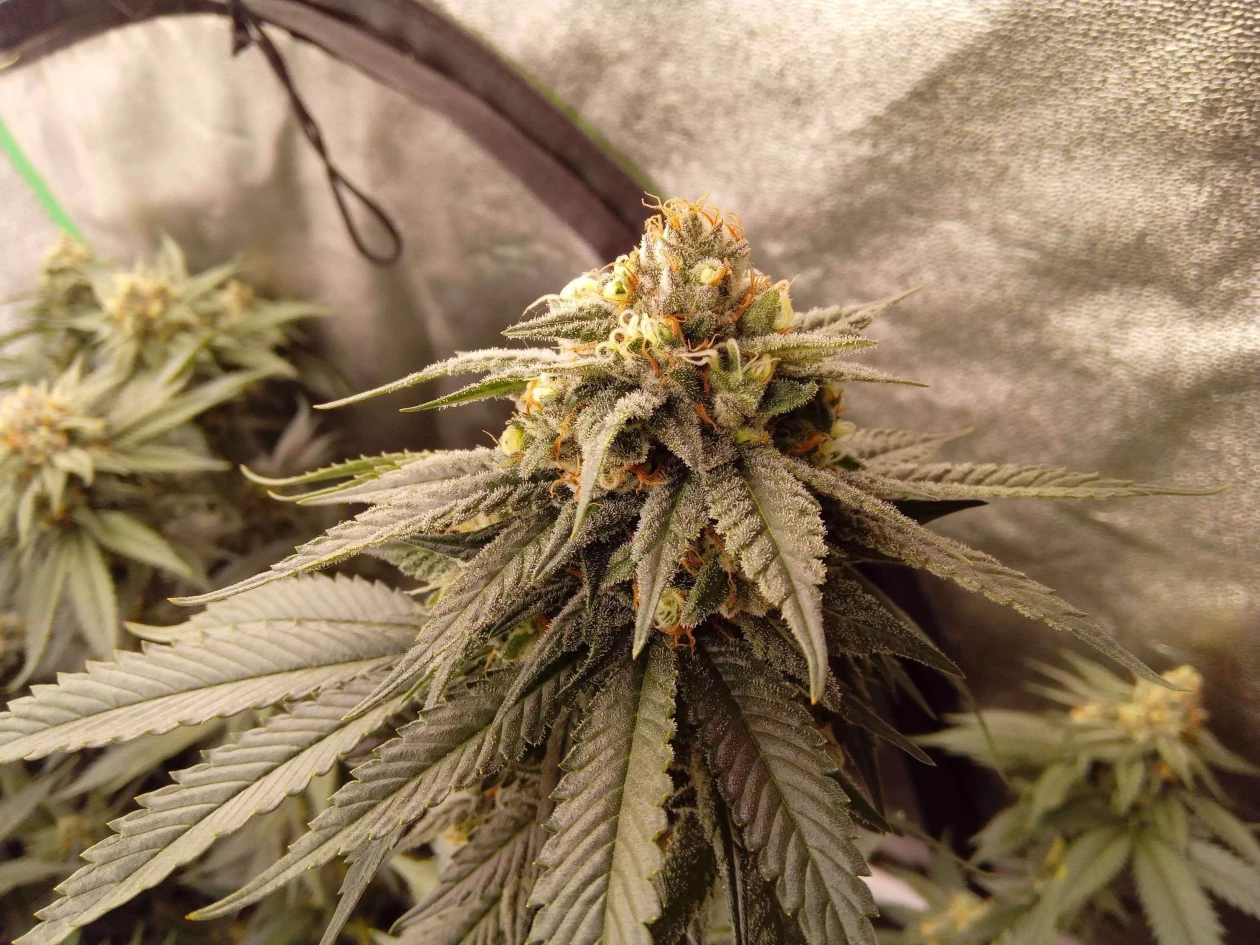 Aufgrund des massiven Knospengewichts ist es am besten, Stützstangen zu platzieren, damit die Zweige der Pflanze nicht abbrechen. Beachte die jeweiligen Wachstumstipps und kümmere dich um eine gute Trimmschere für die unglaublichen Harzerträge dieses Strains.