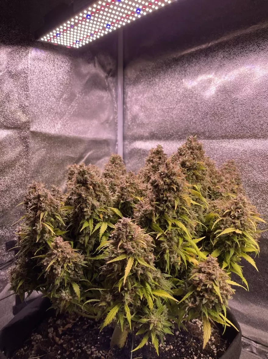 Perfekt für Anfänger! Meine Pflanze ist jetzt etwa 76 Tage alt und ich lasse sie noch ein paar Wochen wachsen. Die Bedingungen waren nicht optimal, deshalb braucht sie etwas Zeit, aber das ist okay für mich. Ich bin noch ziemlich unerfahren, erst mein zweiter Grow.