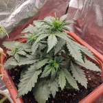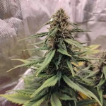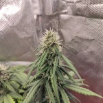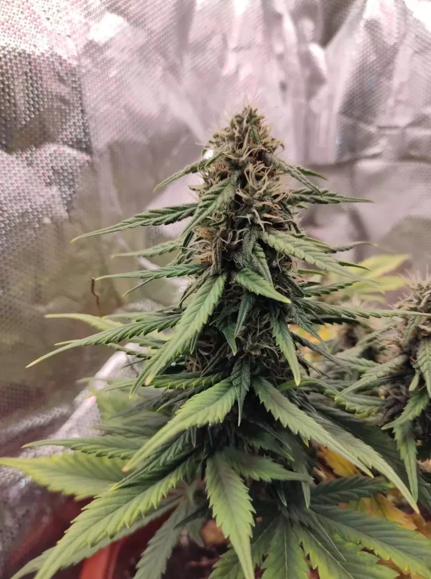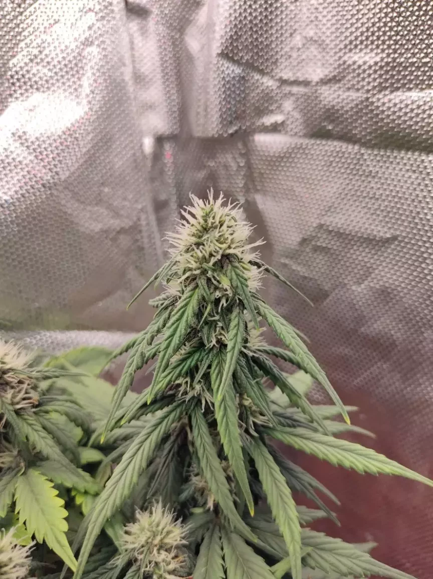 Update. Foto – Tag 35. Wahnsinnig schnell blühende Sorte. Blüht super früh! Umstellung auf Blüte an Tag 20. Perfekt für Ungeduldige. Einfach fantastisch. Ohne Übertreibung die beste Sorte, die ich dieses Jahr angebaut habe. Funktioniert perfekt bei mir. Das Foto ist von Tag 35 und sie blüht schon voll. Krass ist, dass sie an Tag 35 schon von einer einzigen Portion Dünger richtig potent ist. Ich lasse sie noch drei Wochen wachsen, dann wird sie der absolute Hammer sein. Peace!