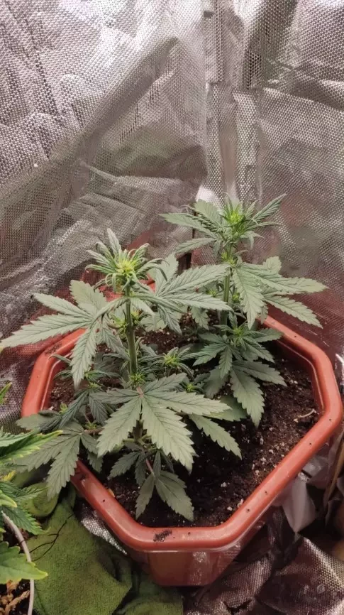 Starker Start, wächst kräftig. Ich habe alle Bewertungen gelesen und war mir unsicher, ob ich es vor den Feiertagen versuchen sollte, aber ich hatte Glück. Die Keimung war wie immer problemlos. Nach 15 Tagen sah die Pflanze schon richtig gut aus. Der Stamm ist so dick wie mein kleiner Finger, wächst stetig und bildet viele Seitentriebe. Schade, dass mein Grow-Raum so klein ist. Super kleines, unauffälliges Setup: 60-Watt-Quantum-Board, 14/10-Beleuchtung, 8-Liter-Topf. Trotzdem sieht die Pflanze für ihre Größe echt überzeugend aus. Ich werde bald mit dem Training beginnen. Sie riecht schon, ein bisschen wie eine Zigarre, schwer und intensiv. Die endgültige Bewertung folgt später.