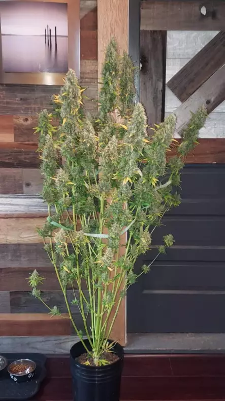 Tolle Pflanze zum Züchten, wuchs schnell und wurde groß, genau wie die anderen Mimosa-Pflanzen, mit denen sie wuchs. Feste große Knospen über die gesamte Länge der Stiele, viel Gewicht bei diesem Mädchen, klebrig und toll riechend.