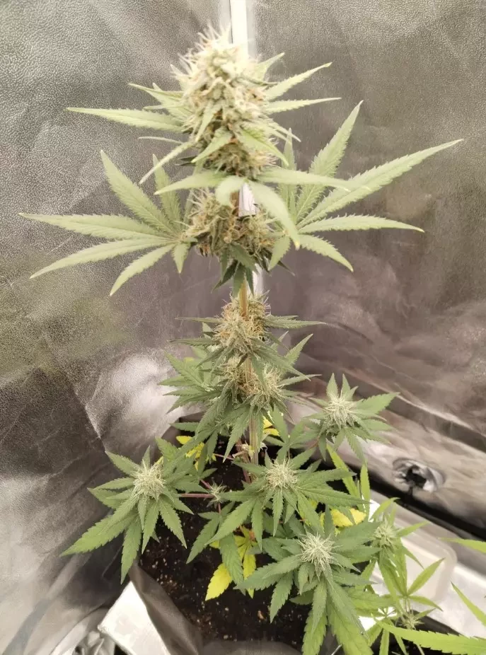 Wächst schnell und wütend!!! 67 Tage von der Saat bis zur Ernte!!! Ich habe sie während der Vegetation versehentlich gestresst - 5 Tage ohne zu gießen, aber sie hat überlebt und 62g trockene Knospen geerntet!!!