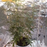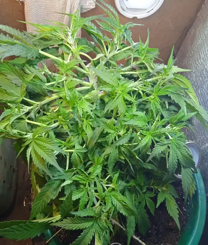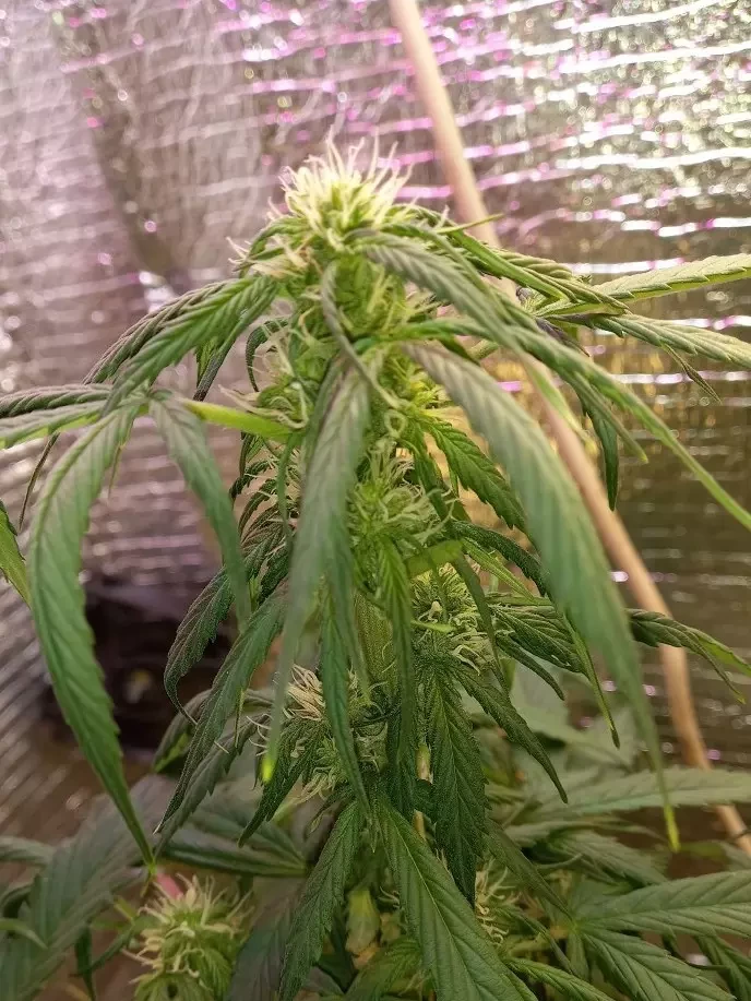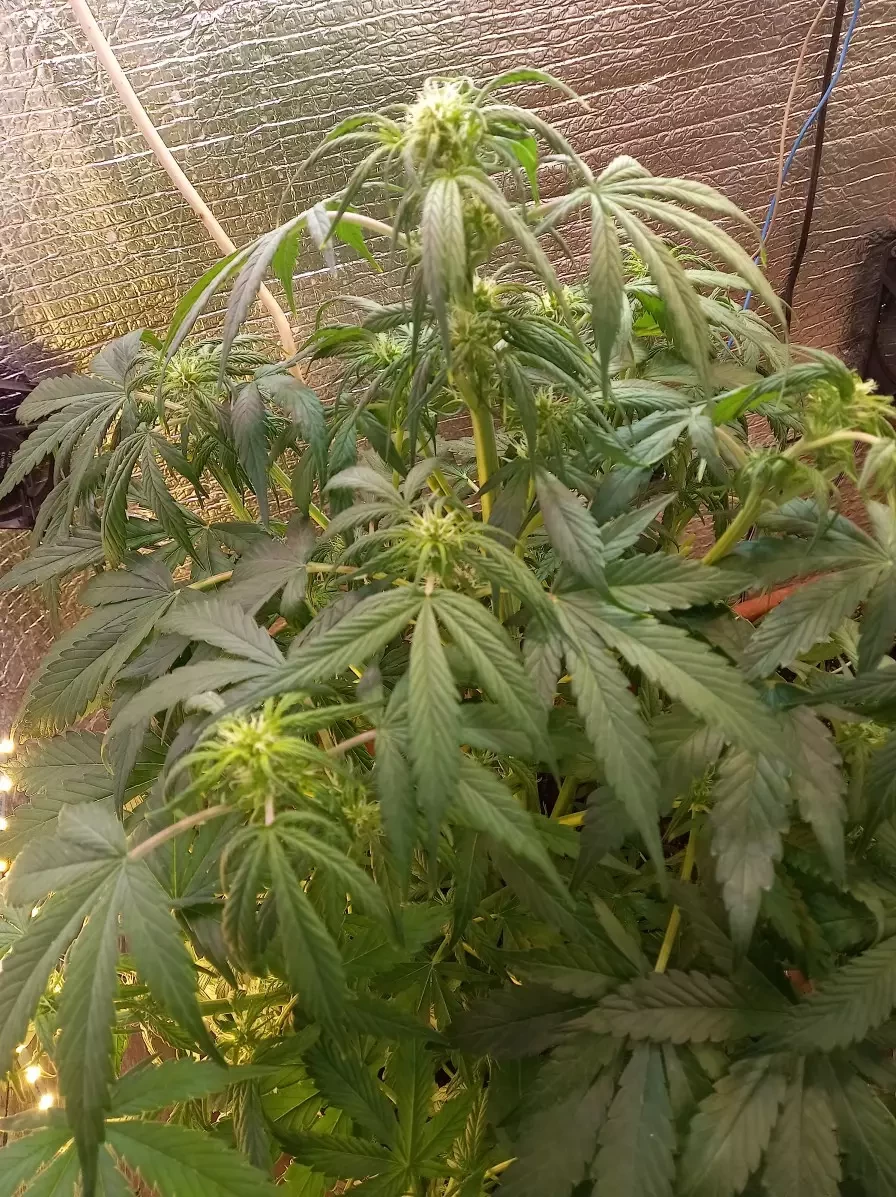 Alle drei sind gekeimt, wuchsen etwa 65 Tage und wurden ungefähr 90 cm hoch. Vielleicht habe ich sie etwas zu früh geerntet, aber sie haben mich einfach magisch angezogen. Als sie mir dann sogar im Traum erschien, wachte ich auf und dachte: „Zeit, diesen kleinen Teufel zu trimmen.“ Sie war harzig und klebrig wie die Hölle, also habe ich sie sauber und ordentlich getrimmt, ohne dass es jemandem aufgefallen ist. Die größte Blüte war etwa 7,5 cm lang. Absolut keine Beschwerden. Super Sativa-Vibe, die Blüten sind klebrig und stinken intensiv, und das High ist einfach nur der Hammer. Ein Zug, und man schwebt, alles wird hell und saftig, einfach pure Entspannung mit Sonnenbrille und Kopfhörern. Ich habe sie unter normalen LED-Lampen angebaut, plane aber, mir beim nächsten Mal eine stärkere Lampe zu besorgen. Das einzige Problem ist die Hitze im Zelt, ich bin noch dabei, herauszufinden, wie ich es besser kühlen kann. Die Töpfe fassen nur 4,9 Liter, daher ist der Ertrag wohl etwas gering. Ich sehe Leute, die riesige Pflanzen züchten, und meine bleiben immer etwas schmächtig. Ich habe schon fünf Pflanzen angebaut, alle sehen am Ende ungefähr gleich aus: groß und dünn mit Sativa-Blättern, verschiedene Sorten, aber alle sehen gleich aus. Es könnte an den Lampen oder der Topfgröße liegen. Ich habe acht 150-Watt-LEDs, eine violette Pflanzenlampe mit 190 Watt und einen kleinen weißen Fluter für die Wachstumsphase. Hat jemand ein ähnliches Setup und kann mir Tipps geben, wie ich mein Growzelt verbessern kann?