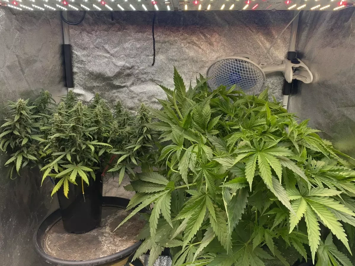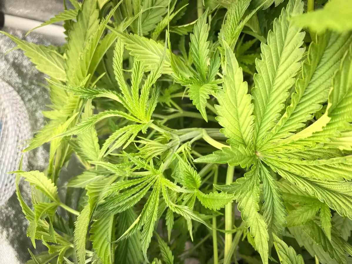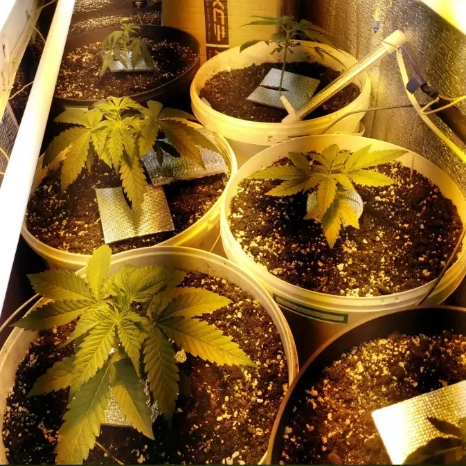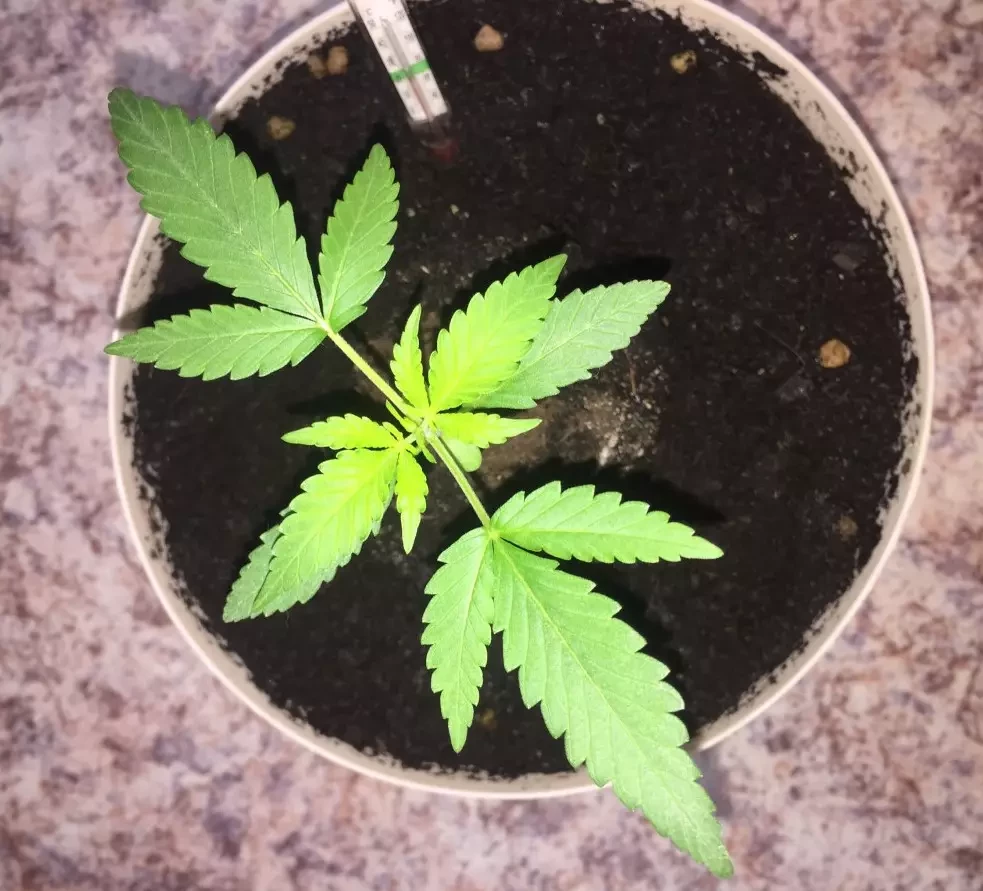 Alle 5 von 5 Samen sind gekeimt. Bisher keine Probleme. Ein großes Dankeschön an Herbies für ihre Arbeit! Alle Samen sind aufgeplatzt, das Wachstum verlief die ersten zwei Wochen langsam, dann ging es aber kräftig los – ich war sehr zufrieden. Die Pflanzen kamen am 24.08. aus der Erde. Zwei verschiedene Phänotypen. Sie wächst bisher besser als meine AK, mal sehen, wie es weitergeht. Sie hat jetzt schon 7 Nodien, blüht noch nicht, aber das Geschlecht ist bereits erkennbar. Bei der AK ist das noch nicht der Fall. Die Beleuchtung besteht aus einer 400-W-HPS-Lampe und 7 Tageslichtlampen, vier 6500K und drei 4000K, je 40W. Die Gesamtlichtstärke beträgt über 35.000 Lumen, das entspricht etwa 3000 Foot-Candles – mein Messgerät zeigt nicht mehr an. Der Schrank ist 65x180x170 cm groß. Die Temperatur liegt tagsüber zwischen 28 und 32 Grad und nachts zwischen 15 und 17 Grad. Bis jetzt läuft alles bestens 🤞